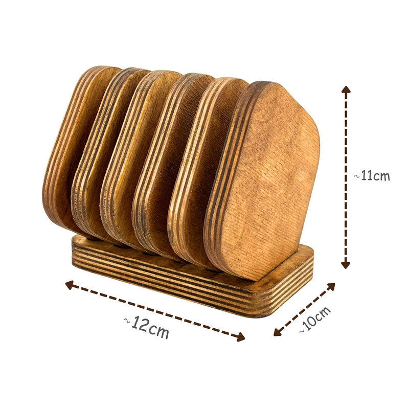 مجموعه زیر لیوانی چوبی مدل مربع کد ZL04، شامل 6 عدد زیر لیوانی طرح دایره و یک استند نگهدارنده است که جلوهای زیبا و منحصر به فرد به میز پذیرایی شما میبخشد.