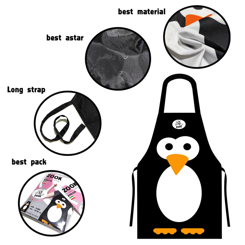 دارای بسته بندی قلابدار و قابل باز و بست شدن با دکمه رنگ ثابت و کاملا قابل شستشو دارای 2 بند بلند قابل گره زدن در پشت دارای بند گردنی بسیار لطیف دارای آستر ضد آب