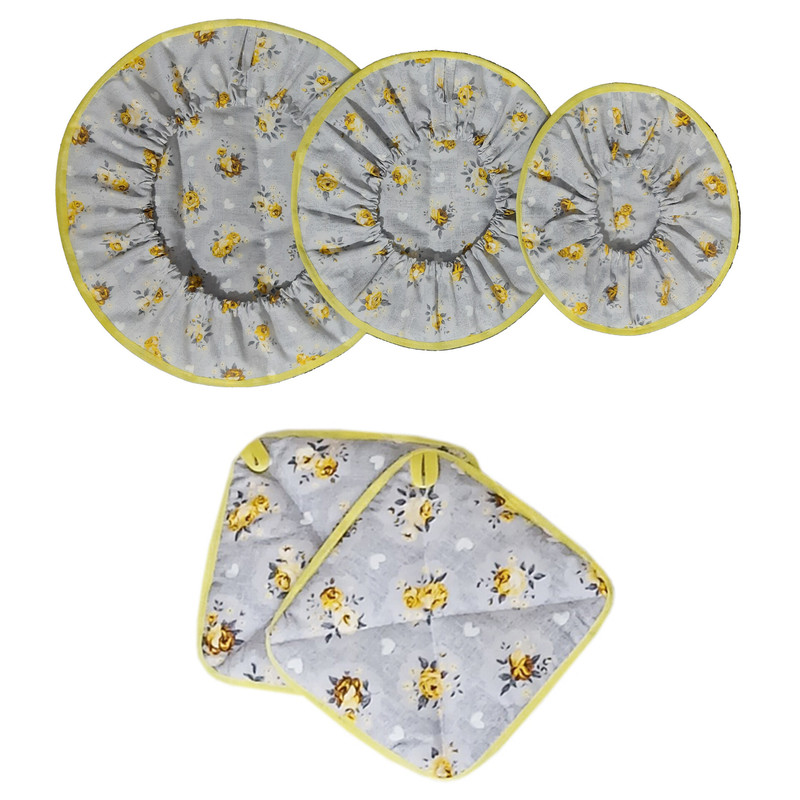 ست ۳تکه دمکنی دور کش با بند جهت آویران کردن و ۲عدد دستگیره بندینک دار که در لایه میانی این ست از پشم شیشه استفاده شده است.قابلیت شست و شو در ماشین لباسشویی نیز دارد.