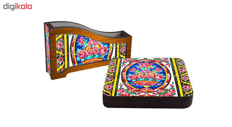 چاپ مستقیم روی چوب عدم تغییر رنگ مقاوم در برابر رطوبت 6 عدد زیرلیوانی با پایه استند چوبی ساخت ایران طرح و رنگهای متنوع و زیبا