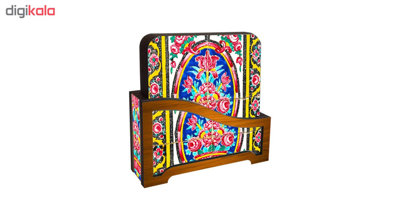 چاپ مستقیم روی چوب عدم تغییر رنگ مقاوم در برابر رطوبت 6 عدد زیرلیوانی با پایه استند چوبی ساخت ایران طرح و رنگهای متنوع و زیبا