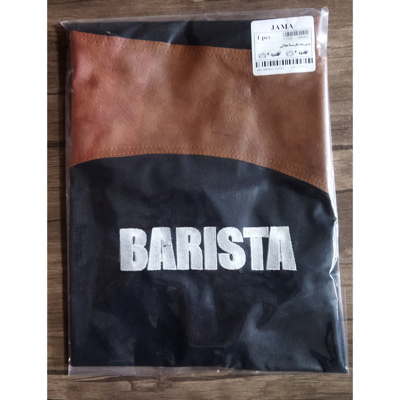 پارچه لی - رنگ مشکی - بندهای قابل تنظیم - دارای یک جیب - دارای گلدوزی کلمه BARISTA