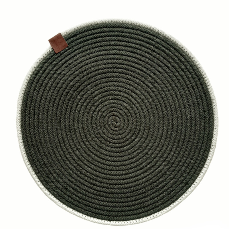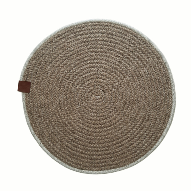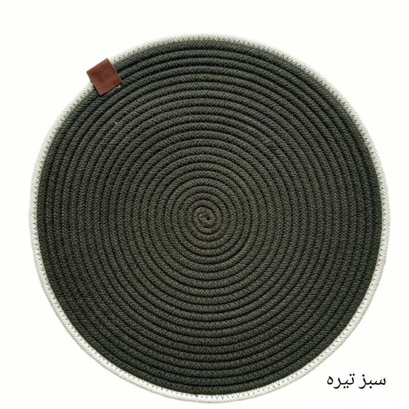 ساخته شده از کنف و نخ ؛ علاوه بر زیر بشقابی و زیر قابلمه ای میتوان بعنوان زیر گلدانی نیز استفاده کرد