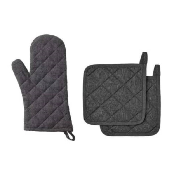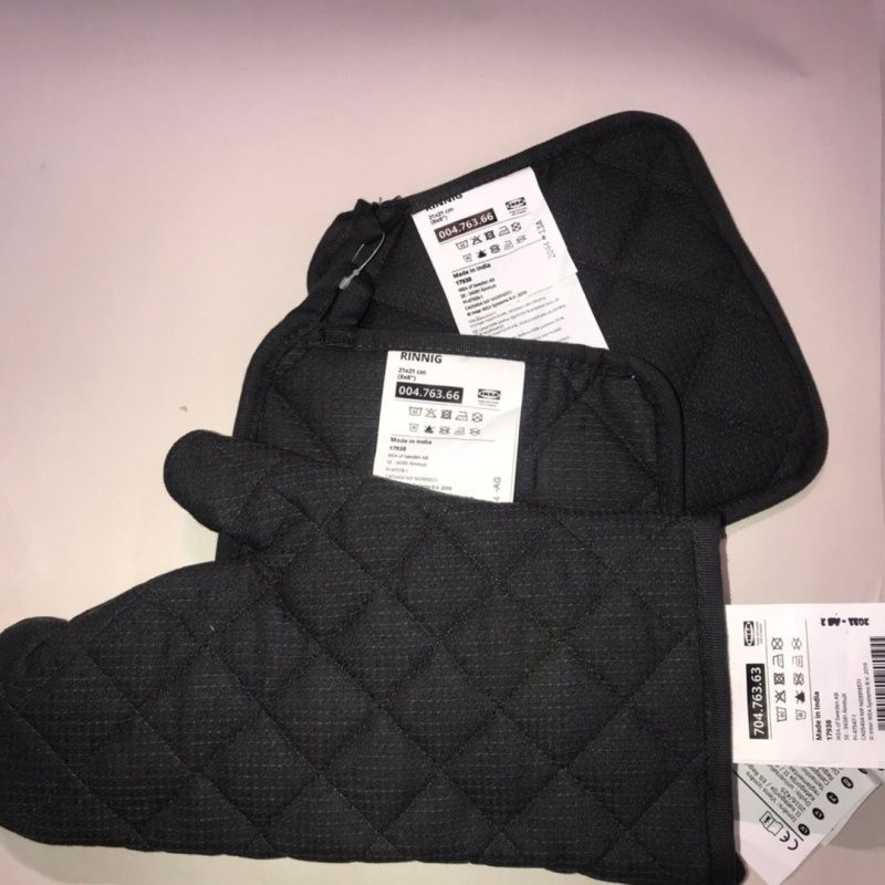 ست دستگیره ودستکش فر ایکیا مدل RINNIG پر شده با الیاف پلی استر شامل دو عدد دستگیره و یک عدد دستکش فر سایز دستگیره : 21×21 سانتیمتر سایز دستکش فر : 34×21 سانتیمتر شست و شو در ماشین با دمای 60 درجه برنامه معمولی قابل اتو کشیدن خشک شوئی نشود سفید کننده استفاده نشود پس از شست و شو بصورت صاف قرار داده شود طراحی و کیفیت کمپانی ایکیا سوئد لازم به ذکر هست دستکش این پکیج برای چپ دستها وراست دستها بدون مشکل قابل استفاده میباشد
