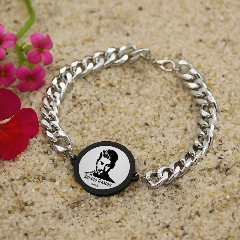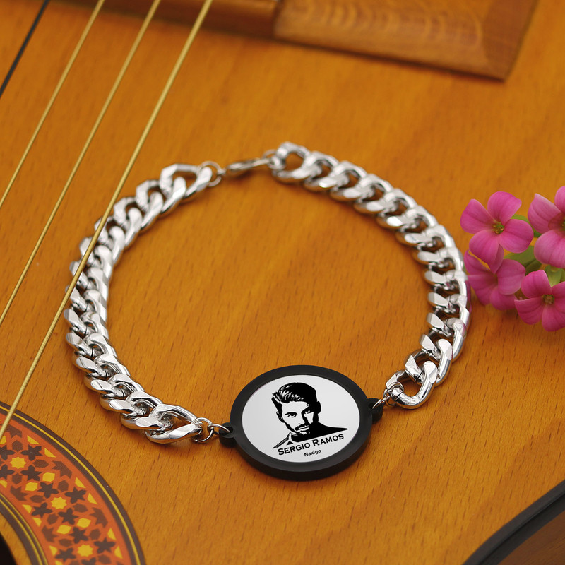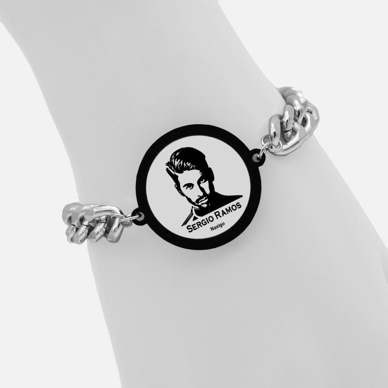 دستبند به عنوان یک اکسسوری جذاب و زیبا برای تمام افراد و تمام سنین به شمار می آید. دستبند ناکسیگو طرح سرخیو راموس ساخته شده از جنس زنجیر استیل و پلاک اکریلیک است. کاملا ضد حساسیت بوده و رنگ ثابت دارد. طول دستبند 20 سانتی متر است و قطر آویز حدودا 3 سانتی متر می باشد. محصول با بسته بندی شیک و مناسب جهت هدیه ارائه می شود.
