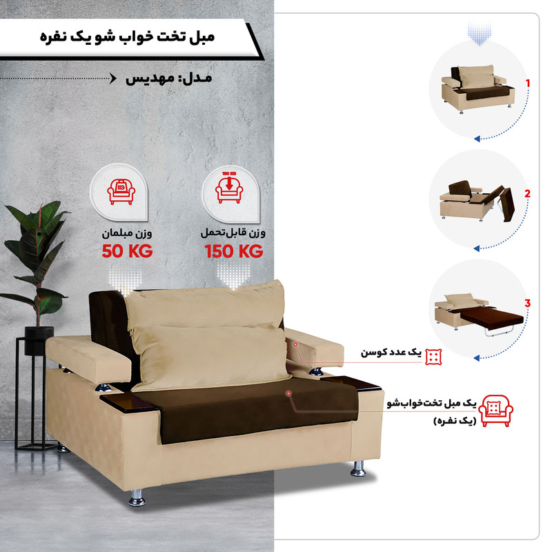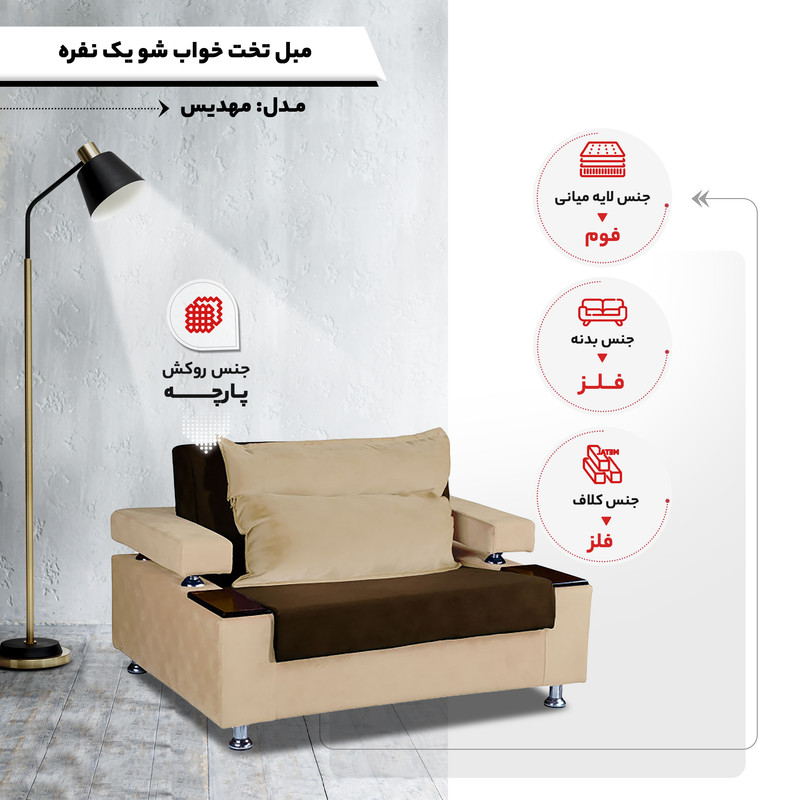 مبل تخت خواب شو یک نفره مدل مهدیس