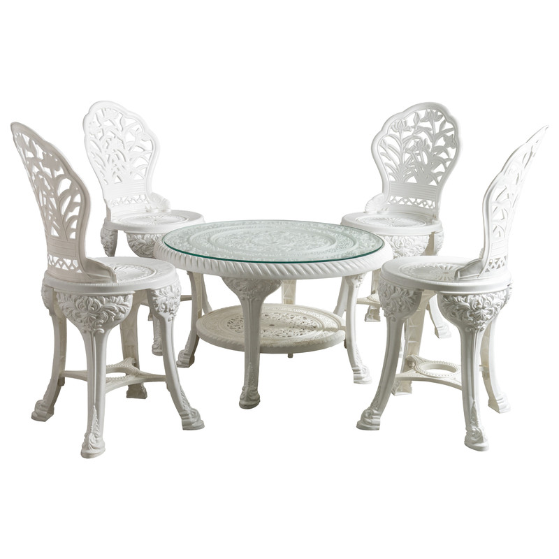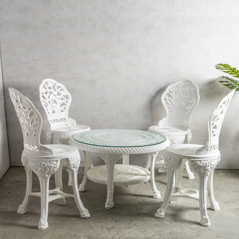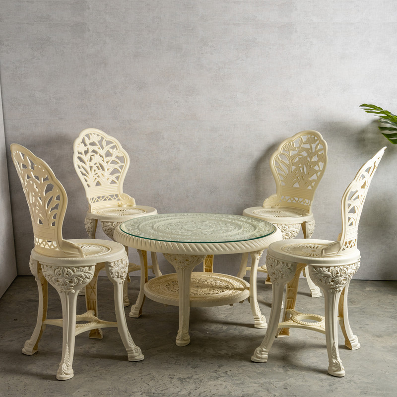 میز و صندلی ناهارخوری چهار نفره مدل گل نقش پایه کوتاه