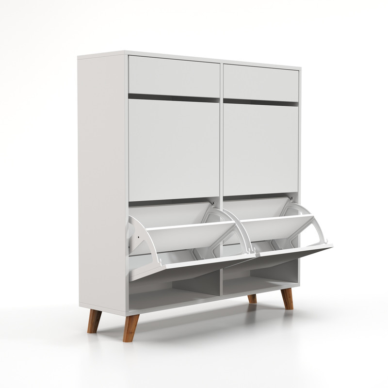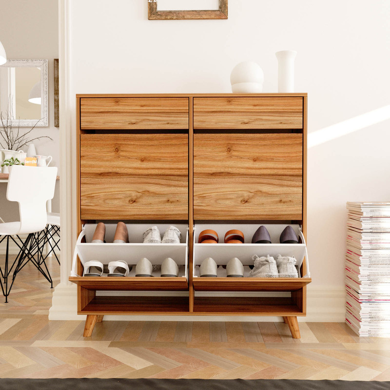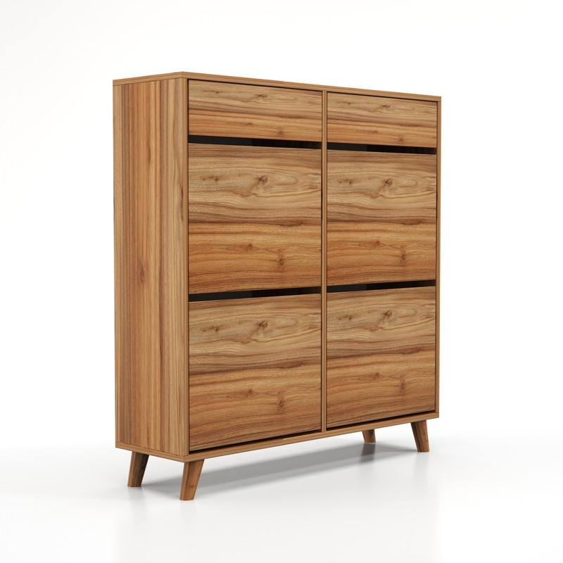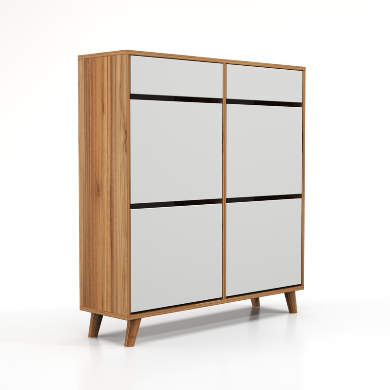 جاکفشی داشبوردی دو درب 70 طرح ایکیا ساخت شرکت چوبجار یکی از کاربردی ترین انواع جاکفشی برای آپارتمان ها و راهروی منزل شماست. این جاکفشی با اشغال فضای حداقلی حداکثر میزان کفش را در خود جای میدهد. ظرفیت این جاکفشی 24 جفت کفش است.