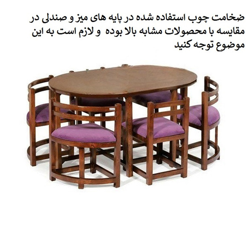 ضخامت چوب در پایه های میز حدودا 5x3 سانتیمتر.| دارای اتصالات بسیار محکم.| ابعاد میز: 140x90 سانتیمتر