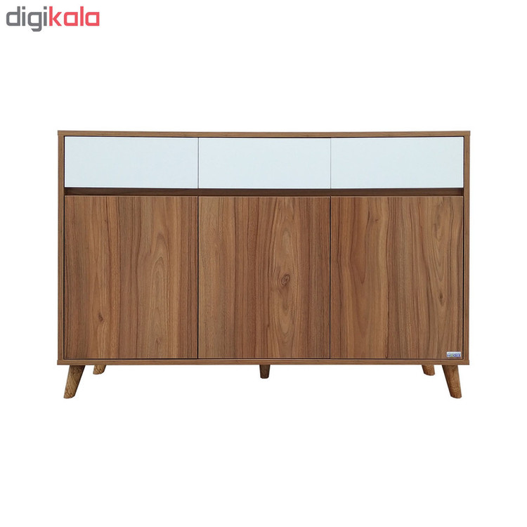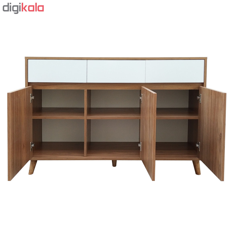 جنس بدنه و درب ملامینه ضد خش دارای سه باکس با طبقه متحرک و پایه های 10 سانتی چوبی