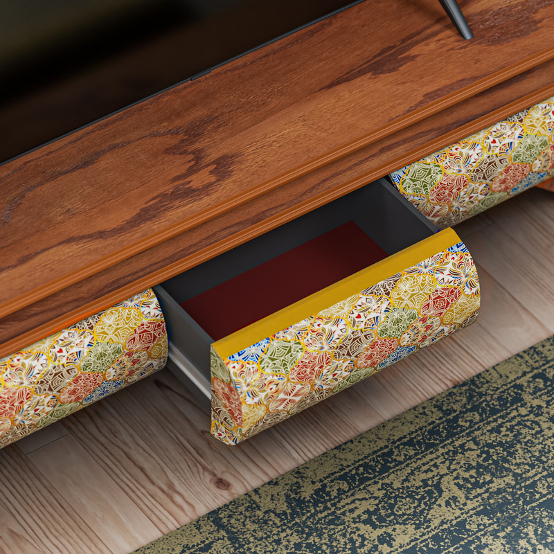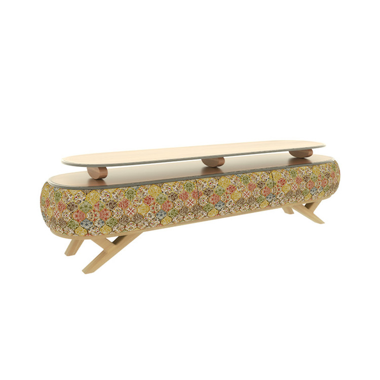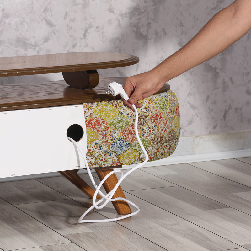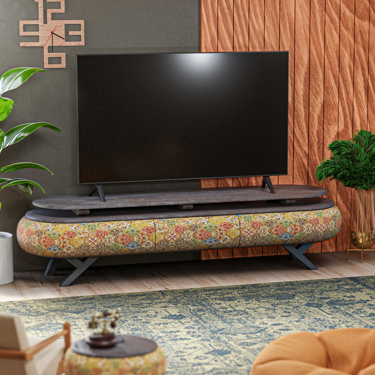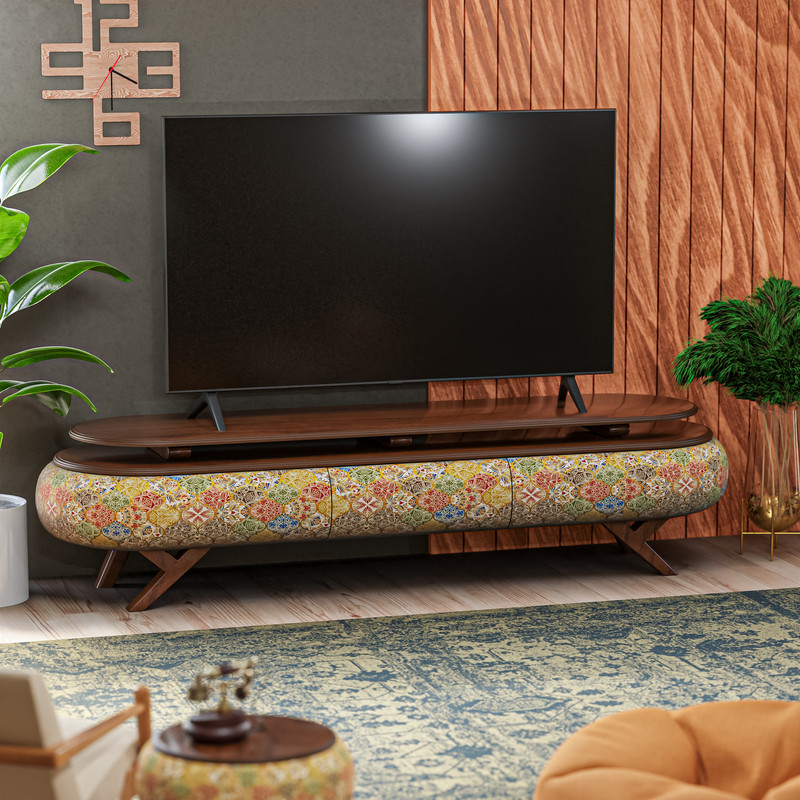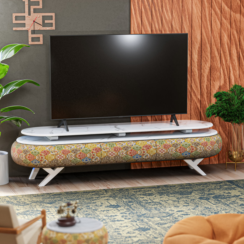 میز تلویزیون مدل AK-93 160 دارای طرح از جنس پارچه مخمل ، دارای محفظه نگهداری سیم ها مناسب مرتب کردن سیم های دستگاه ها است، مناسب دو دستگاه رسیور است، دارای کشو مخفی و ترمینال برق چهار راهی با کیفیت تعبیه در شده در خود میز است