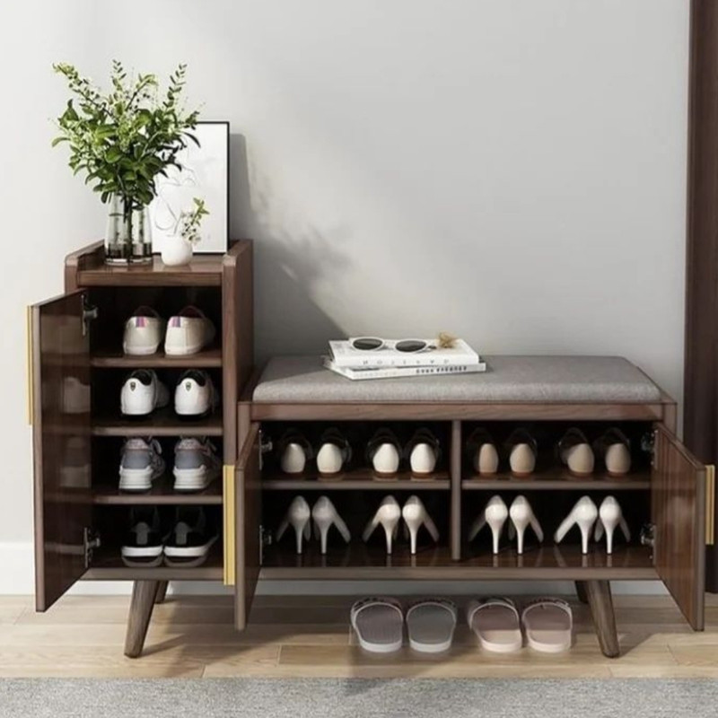 این مدل جاکفشی با 5 تنوع مختلف چوب و نشیمن با پارچه مبلی طوسی تولید میشود