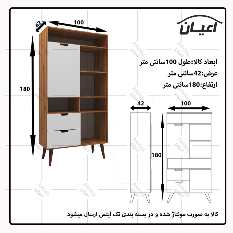 جنس مغزی نئوپان با روکش ملامینه شرکتی لولا آرامبند ریل سه تکه کالا مونتاژ شده و به صورت تک آیتمی ارسال میشود.