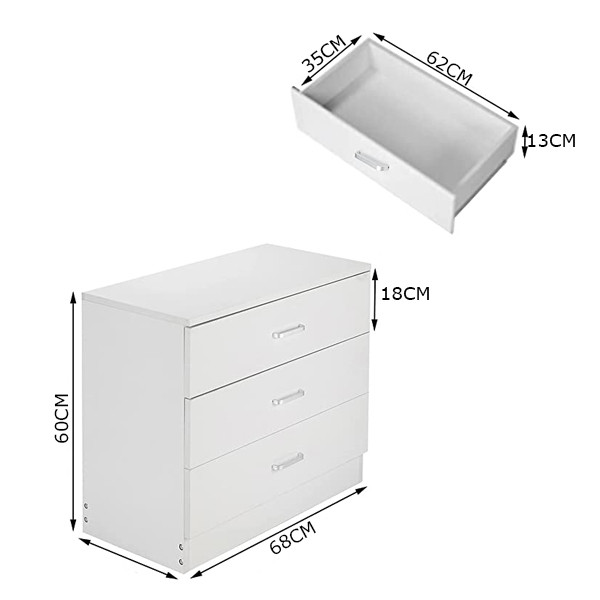 دراور سه کشو مدل IKE4025 جنس روکش ملامینه ضد خش میباشد و کشو ها با ریل ساچمه ای با کیفیت دستگیره فلزی مستحکم در سه رنگ گردویی ، سفید و آنتیک طلایی زیبا و شکیل میباشد.