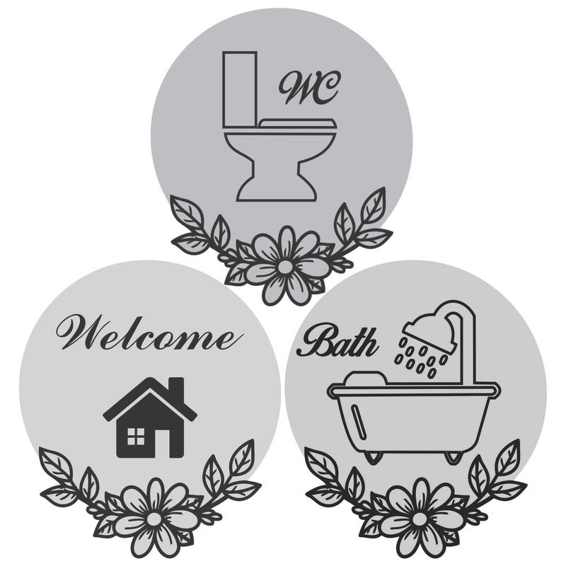 تابلو نشانگر تزیینی مدل ورودی دستشویی و حمام T.M مجموعه 3 عددی