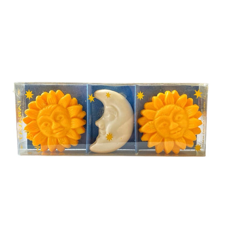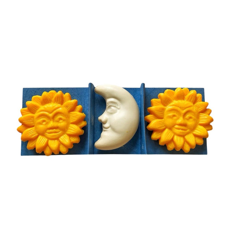 صابون تزیینی طرح ماه و خورشید مجموعه 3 عددی خوشبو و معطر مناسب برای هدیه ، تزیین حمام و سرویس بهداشتی ،جهیزیه گلیسیرینه فاقد مواد شیمیایی دارای سیب سلامت