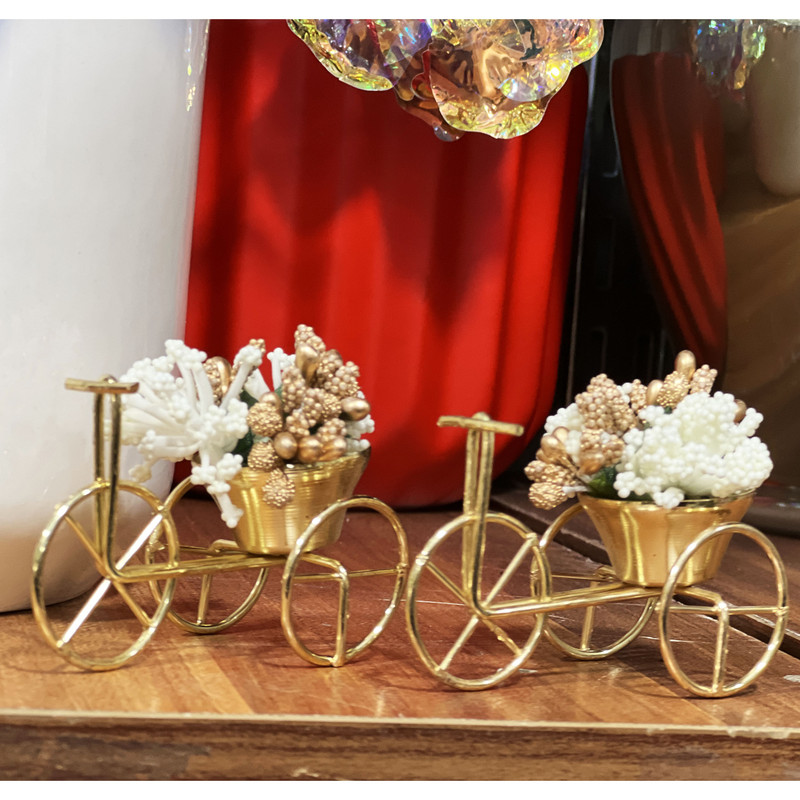 گلدان به همراه گل مصنوعی مدل دوچرخه مینیاتوری مجموعه 2 عددی
