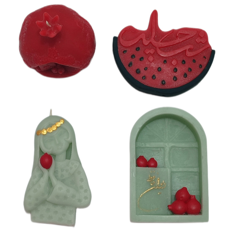 شمع دست ساز معطر یلدا با رایحه دارچین زمان اتمام 12 ساعت مجموعه 4 عددی