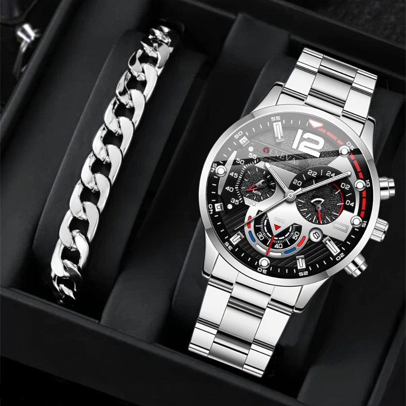 نوع ساعت عقربهای مردانه: ست ساعت و دستبند