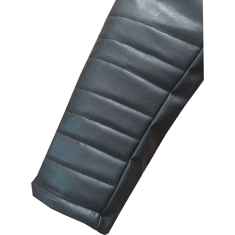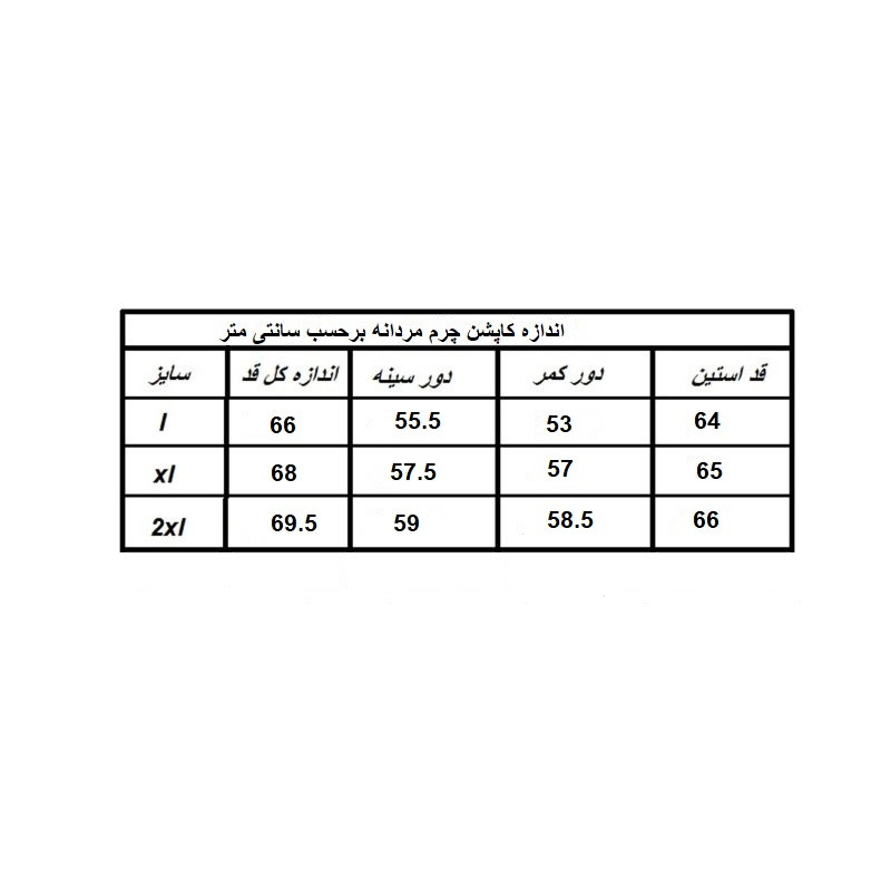 کاپشن مردانه طرح چرم دارای آستر سارژ وزیپ های بسیار با کیفیت تیتانیوم ودوخت بسیار زیبا و تمیز و دارای پارچه چرم مصنوعی با کیفیت و مناسب فصول بهار پاییز وزمستان است.