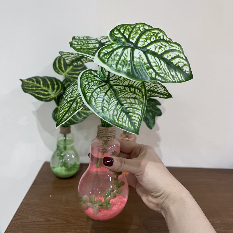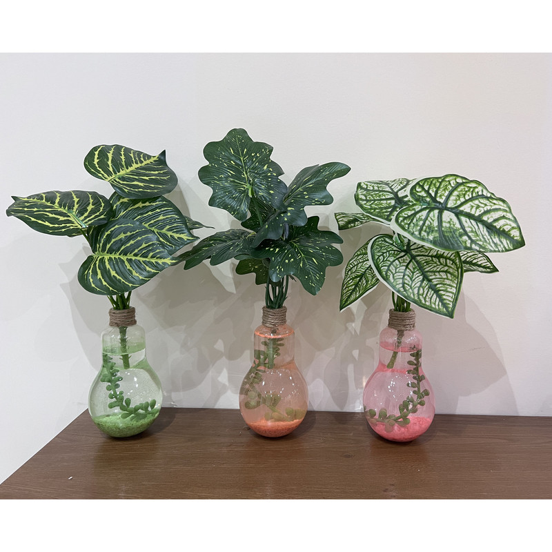 گلدان به همراه گل مصنوعی مدل لامپی 140805 مجموعه 3 عددی
