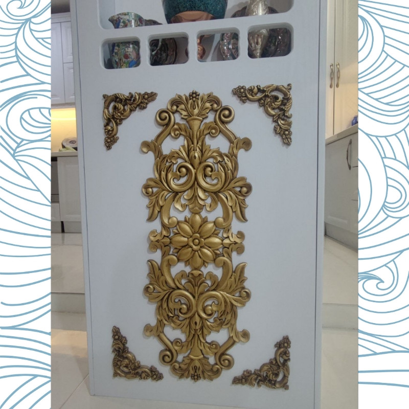 محصول فوق دکوراتیوی برای زیبایی بیشتر خانه ی شما به سبک اصیل ایرانی جایگزین منبت چوب و گچ بری سنتی میباشنداین محصولات میتوانند با الصاق به وسایل قدیمی خانه ی شما اعم از کابینت ها و درب ها و تمام وسایل چوبی جلوه ای زیبا و جدید به آنها بدهند همچنین این محصولات به دلیل رنگ شدن و خام نبودن میتوانند به سادگی جایگزین دیوارکوب ها و قاب عکس ها و تابلو های دیواری و حتی با اندکی خلاقیت جایگزین گچبری شوند.