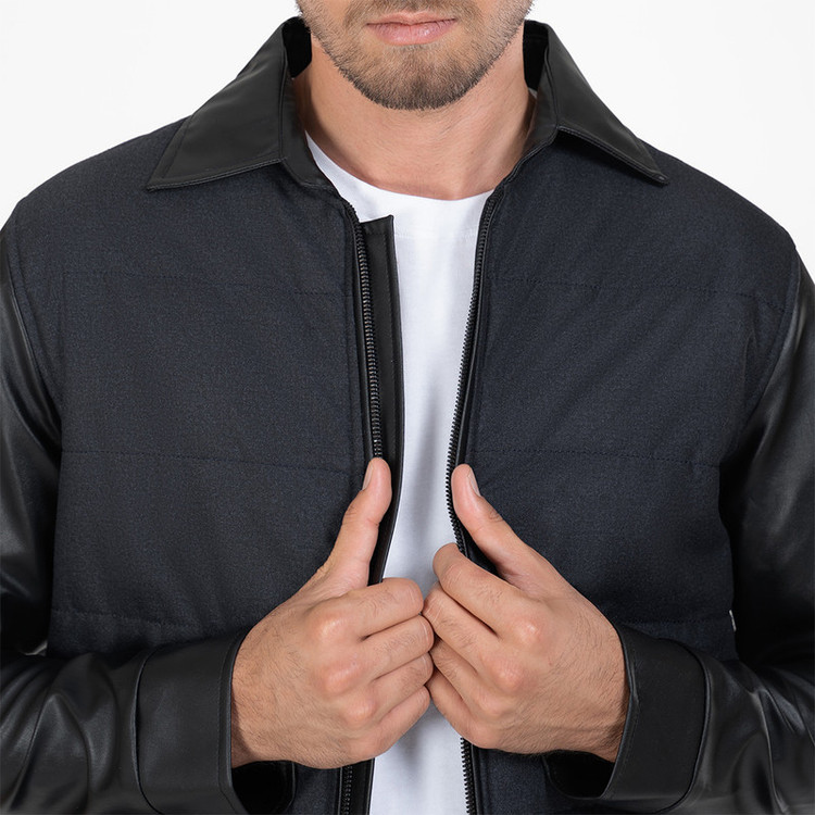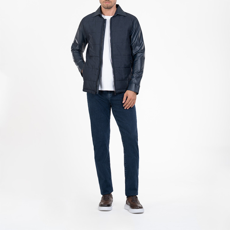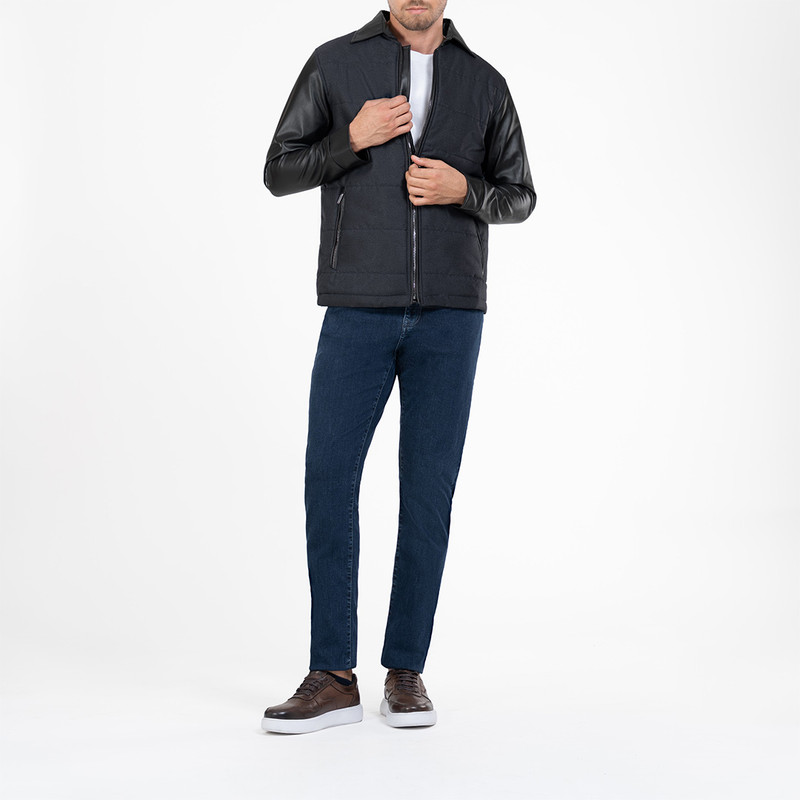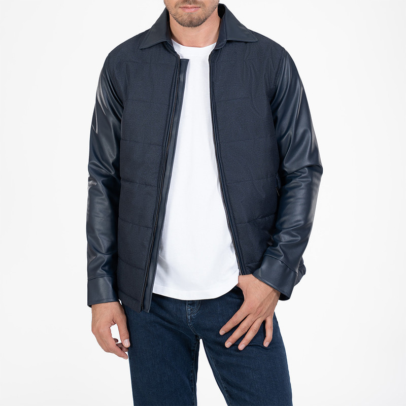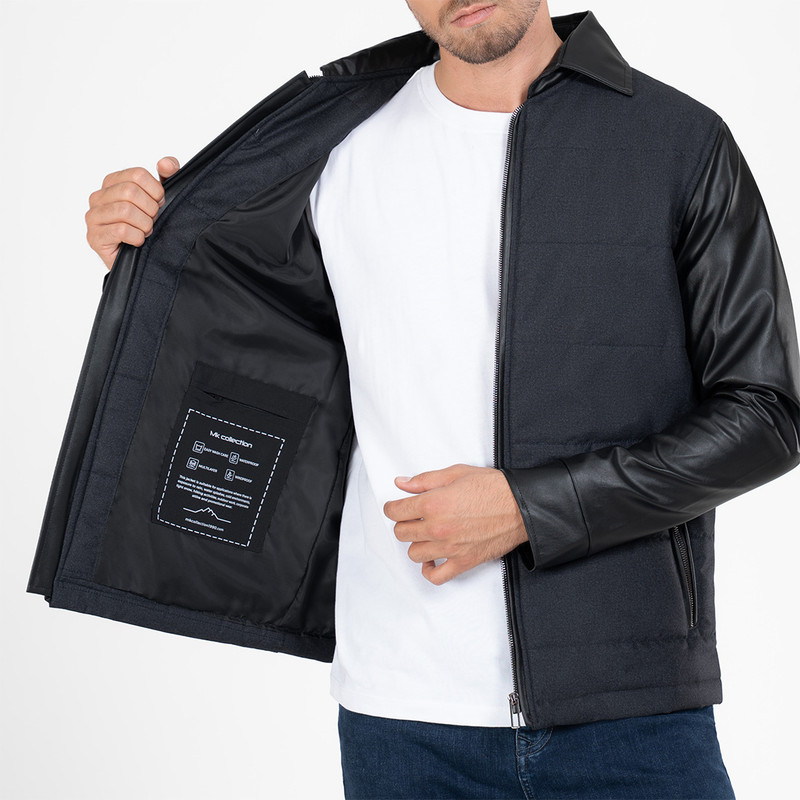 طرح پارچه ساده/جنس پارچه پلی استر آستین چرمی/استایل اسلیم فیت/آستر داخلی/دارای دو جیب جلو و دو جیب داخل کار/مناسب فصل پاییز و زمستان/کد محصول 200/17