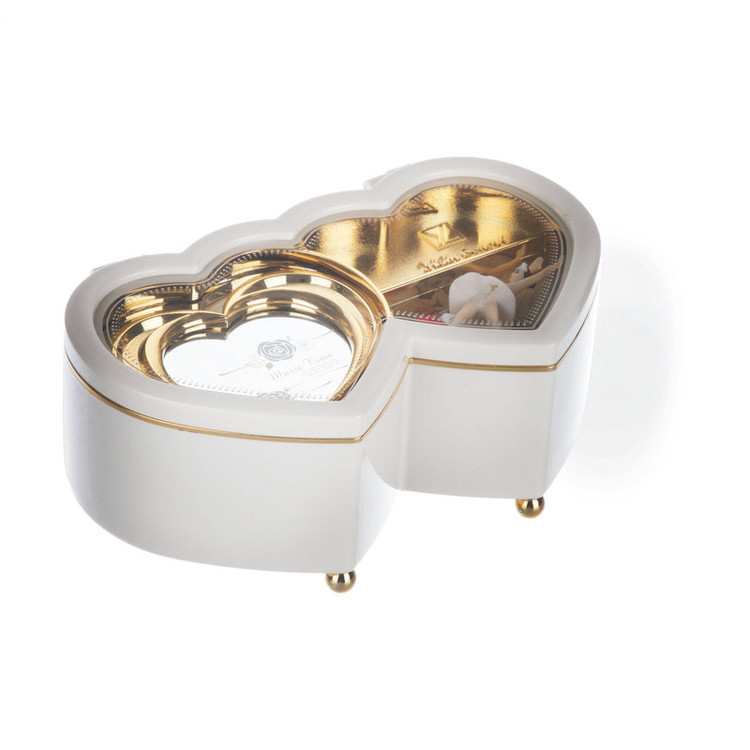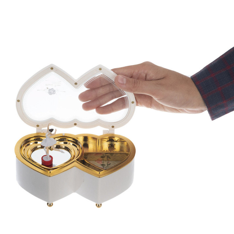 -جعبه موزیکال طرح دو قلب - جعبه موزیکال کوکی -دارای عروسک چرخشی -قابلیت پخش ملودی بدون نیاز به باتری -پخش ملودی با باز کردن درب - دارای طراحی فوق العاده ظریف و خاص - هدیه ای دلپسند برای نوجوانان و بزرگسالان -دکوری زیبا و شیک