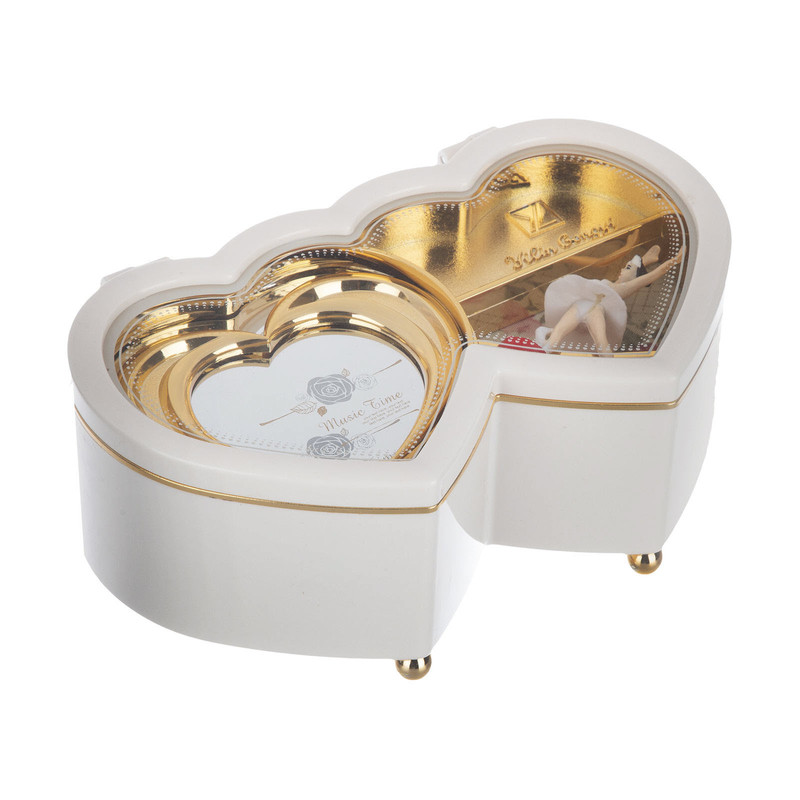 -جعبه موزیکال طرح دو قلب - جعبه موزیکال کوکی -دارای عروسک چرخشی -قابلیت پخش ملودی بدون نیاز به باتری -پخش ملودی با باز کردن درب - دارای طراحی فوق العاده ظریف و خاص - هدیه ای دلپسند برای نوجوانان و بزرگسالان -دکوری زیبا و شیک