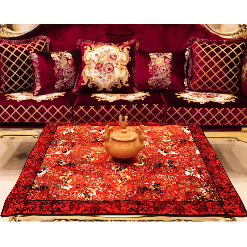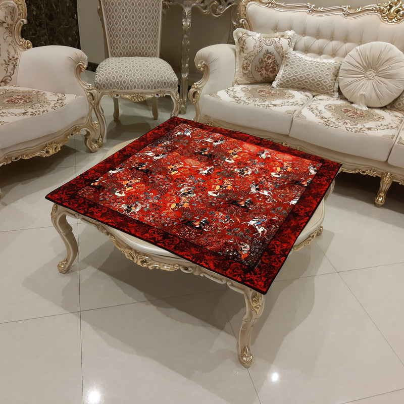 جنس رومیزی فوق از مخمل اعلا بوده به همراه آستری از جنس مخمل ، که کار را منحصر به فرد کرده ، لازم به ذکر است کار فوق قابلیت شستشو در آب ولرم به همراه مواد شوینده لطیف را دارد . چیزی که این محصول را از دیگر رومیزی های موجود در بازار متمایز می سازد استفاده از رنگها و نقش های خاص میباشد که منحصر به فرد است ، بودن آستری از جنس مخمل باعث کمی اصطکاک بر روی میز و شیشه میگردد این در حالیست که اکثر نمونه های مشابه در بازار دارای آستری ساتن و یا تترون میباشند که لیز بودن کار را دو چندان میکند.