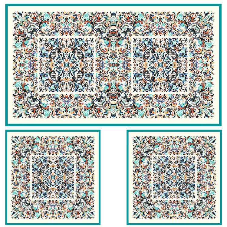 پارچه شانل درجه یک با رنگ ثابت قابل شستشو با مواد شوینده به دفعات دارای لایی در پشت کار برای ایستایی بهتر شامل سه تکه 90x45یک عدد-40x40 دو عدد