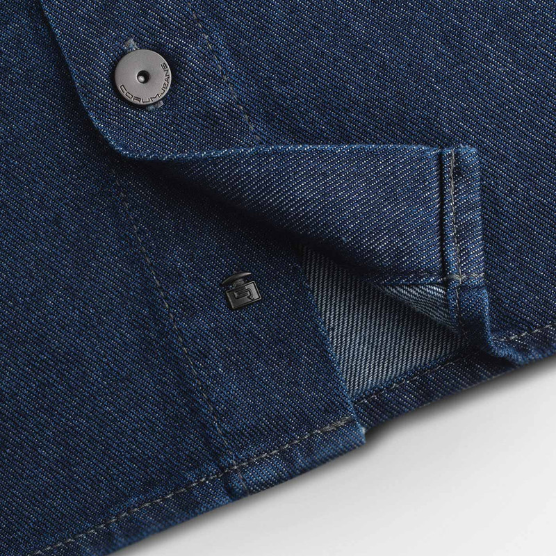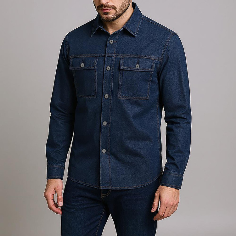کت مردانه جین-تهیه شده از 100% الیاف پنبه-استایل Comfort-Fit-دارای دو جیب روی سینه-پیش کار دکمه دار-آستین تک دکمه-سنگ شور شده با آنزیم جهت ثبات رنگ