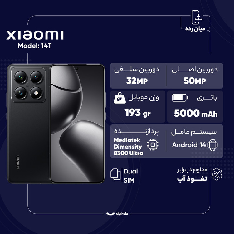 گوشی موبایل شیائومی مدل 14T دو سیم کارت ظرفیت 512 گیگابایت و رم 12 گیگابایت