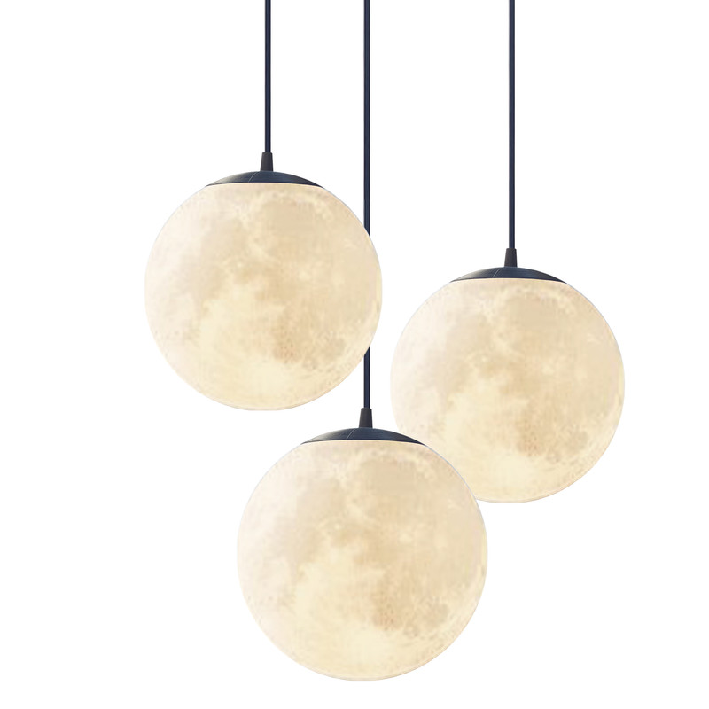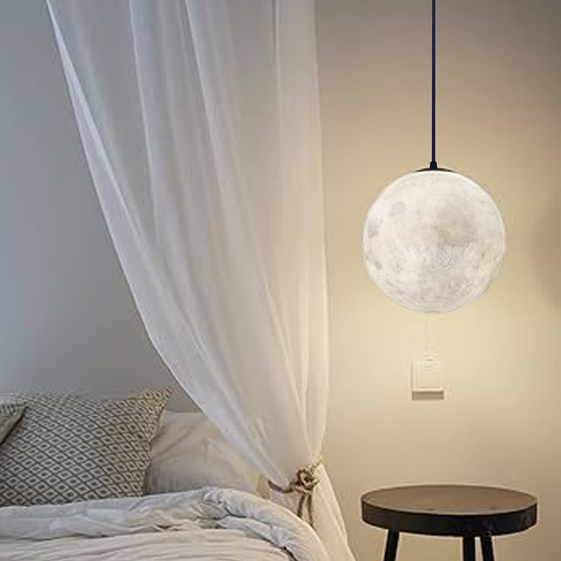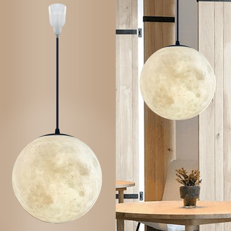 با چراغ آویز دکوراتیو طرح ماه مدل MOON LIGHT ، زیبایی آسمان شب را به خانه بیاورید. این محصول با طراحی اختصاصی و متفاوت از نمونه های مشابه ساخته شده است. در این چراغ رنگ آمیزی به صورت داخلی انجام شده تا جلوه ای ماندگار، تمیز و طبیعی ایجاد کند. کلاهک نگهدارنده نیز به جای شکل استوانهای ساده، بصورت کروی و هماهنگ با ادامه فرم ماه طراحی شده تا کره ماه کامل و واقعی دیده شود. سرپیچ لامپ E27 بوده که با هر نوع لامپ و به رنگ دلخواه می توانید از آن استفاده کنید.