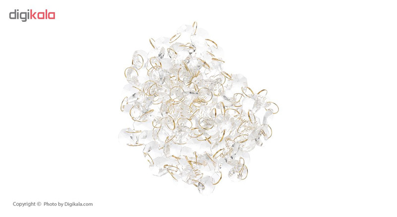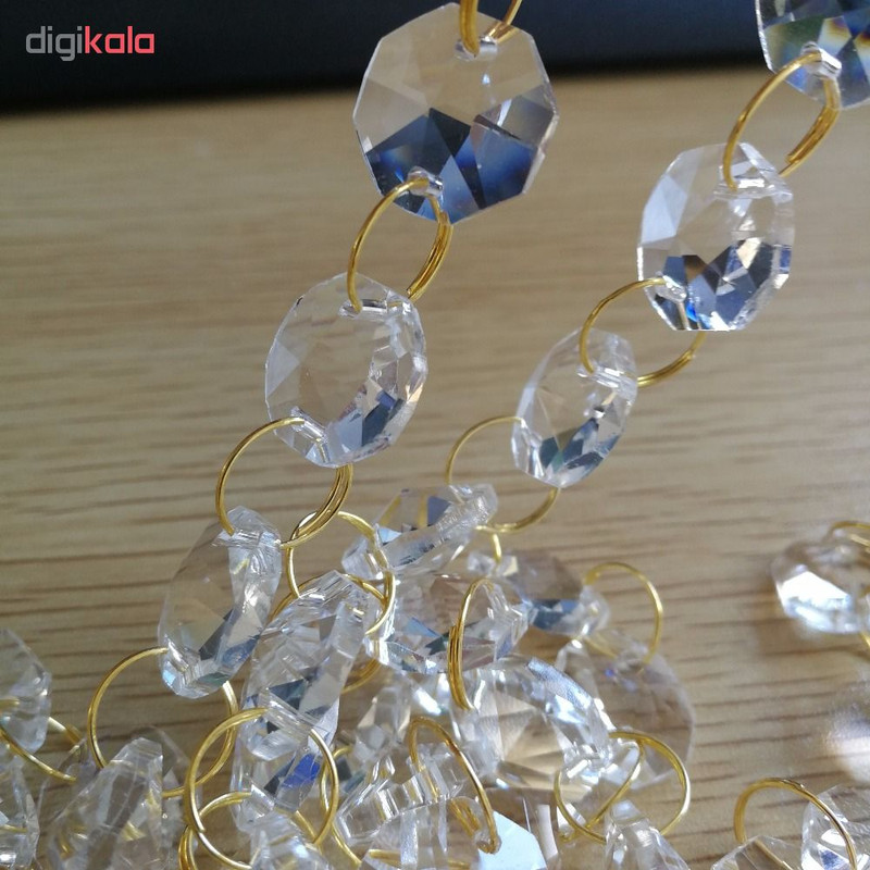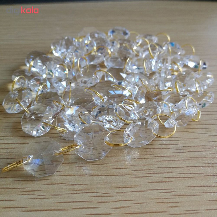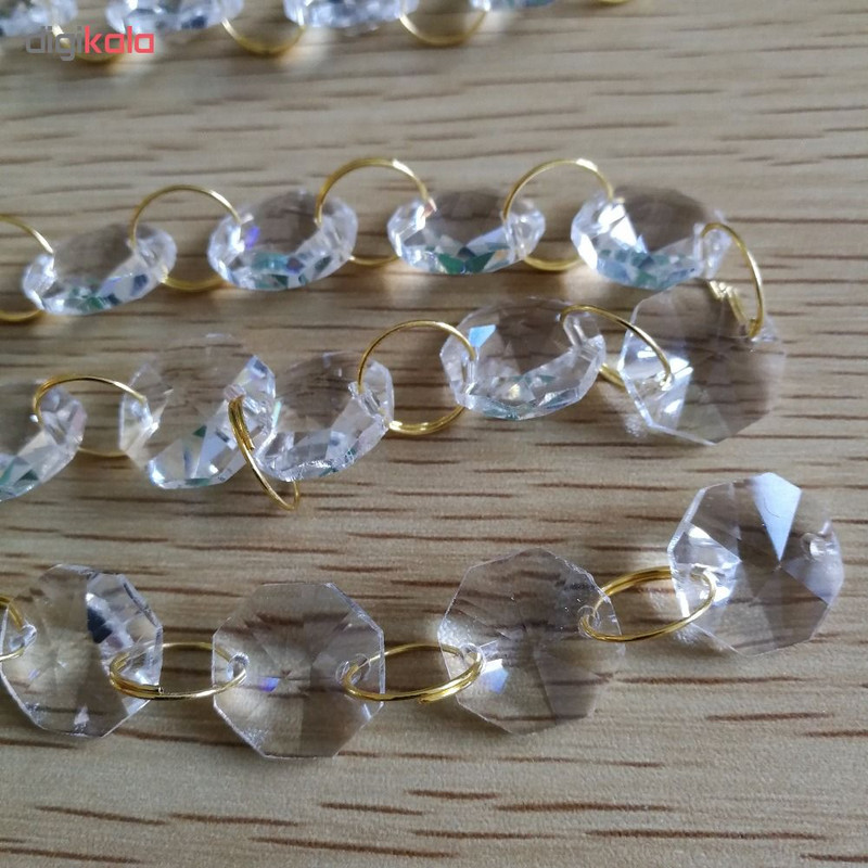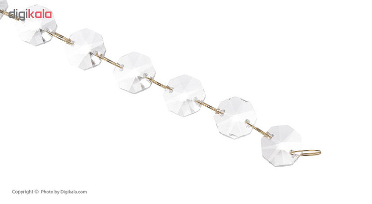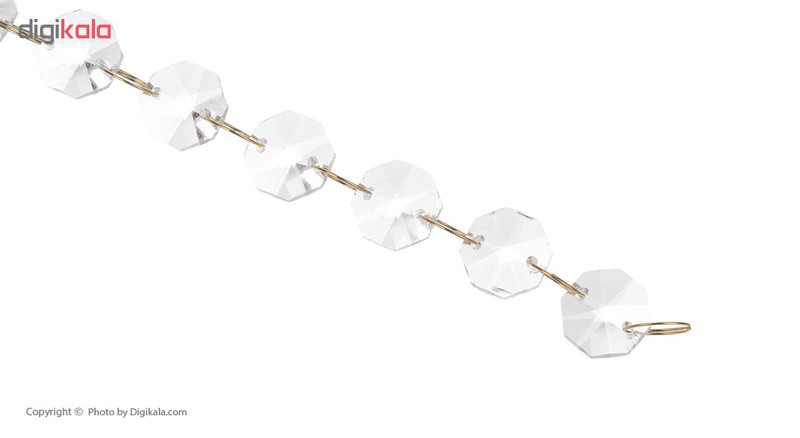نوع کریستال: هشت ضلعی رنگ کریستال: بی رنگ شفاف رنگ حلقه: طلایی وزن هر کریستال:2 گرم طول 100 کریستال بافته شده: 2 متر دارای حلقه اضافه