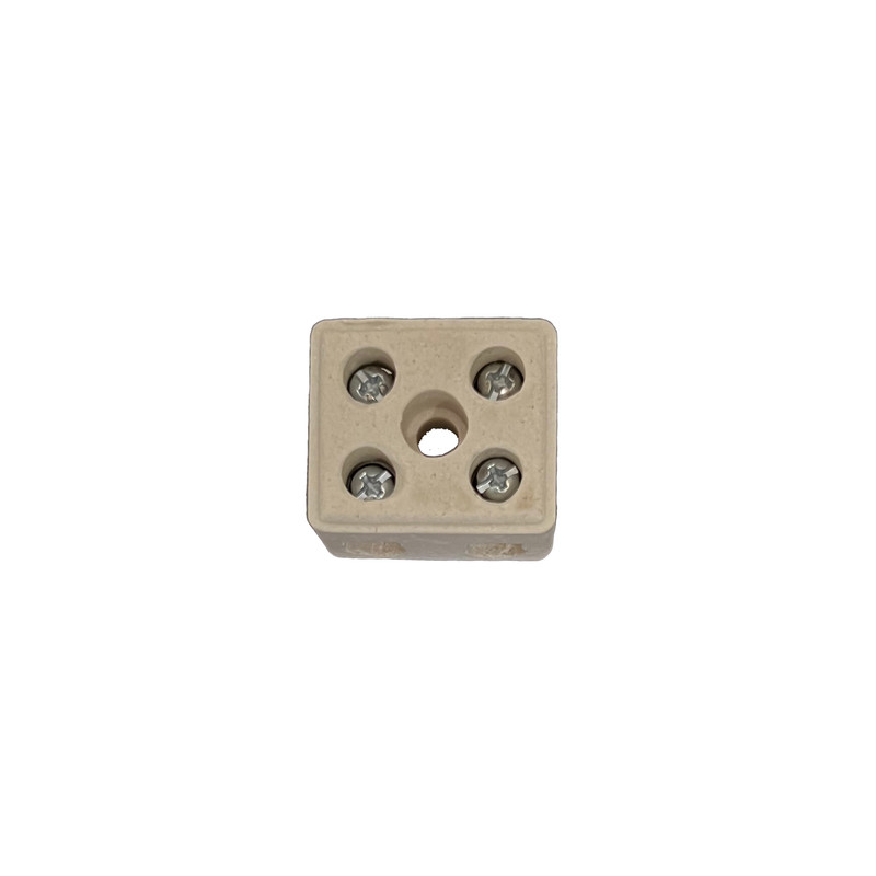 ترمینال های سرامیکی برخلاف ترمینال های پلاستیکی نسوز بوده و مقاومت بسیار بالایی در برابر حرارت دارند. این ترمینال که ساخت شرکت چینی صنعتی ایران است، از نوع دو خانه و مناسب برای سیم با قطر 0.5 تا 6 میلیمتر می باشد. اتصالات این ترمینال از جنس برنج ساخته شده است. حداکثر جریان قابل تحمل برای این ترمینال 25 آمپر است.