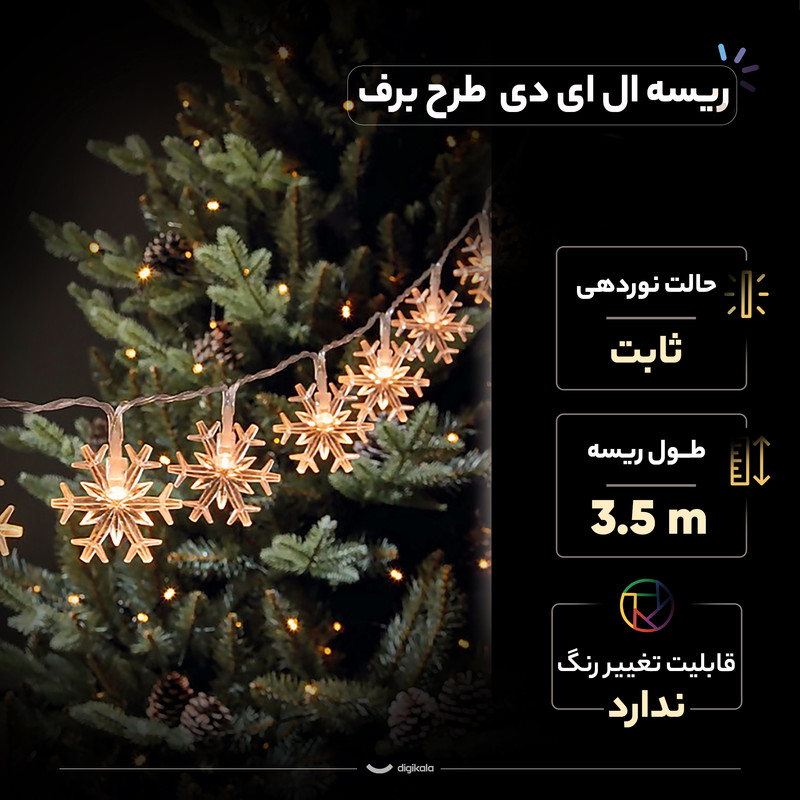 ریسه الایدی طرح برف با طول 3.5 متر، گزینهای فوقالعاده برای ایجاد فضایی شاد و دلپذیر است. این ریسه به دلیل طراحی زیبا و جذاب خود، بهخصوص در فصلهای سرد سال و مناسبتهای خاص، جلوهای خاص به دکوراسیون شما میبخشد. نورهای درخشان و یخی این ریسه، بهویژه در شب، زیبایی خیرهکنندهای را به محیط اضافه میکنند. این ریسه شامل لامپهای الایدی با مصرف انرژی پایین و عمر طولانی است که به شما این امکان را میدهد تا بدون نگرانی از هزینههای برق، از نورپردازی لذت ببرید. طول 3.5 متری این ریسه به شما اجازه میدهد تا آن را در فضاهای بزرگ و مختلف خانه، از جمله باغ، بالکن و دیوارها، نصب کنید. نصب آسان و قابلیت استفاده در داخل و خارج از منزل، از دیگر ویژگیهای برجسته این ریسه است. با استفاده از ریسه الایدی طرح برف، میتوانید به سرعت و سادگی فضای خود را به یک مکان دلانگیز و جذاب تبدیل کنید. این محصول انتخابی ایدهآل برای جشنها، مهمانیها و تزئینات فصلی است.