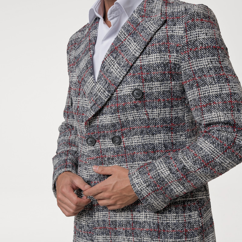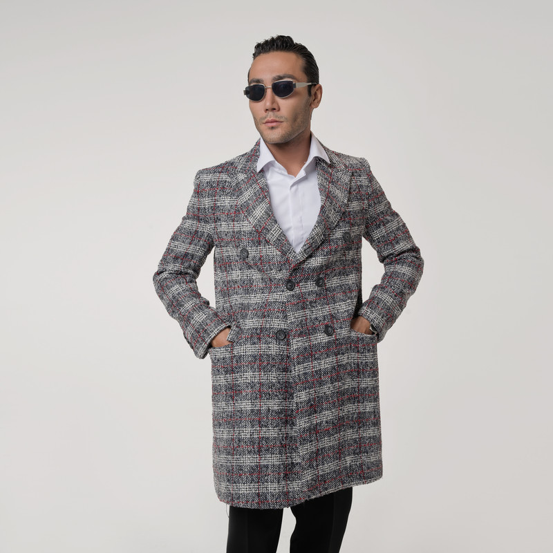 پالتو کوتاه مردانه مدل چهارخانه دبل برس ماهوت 4