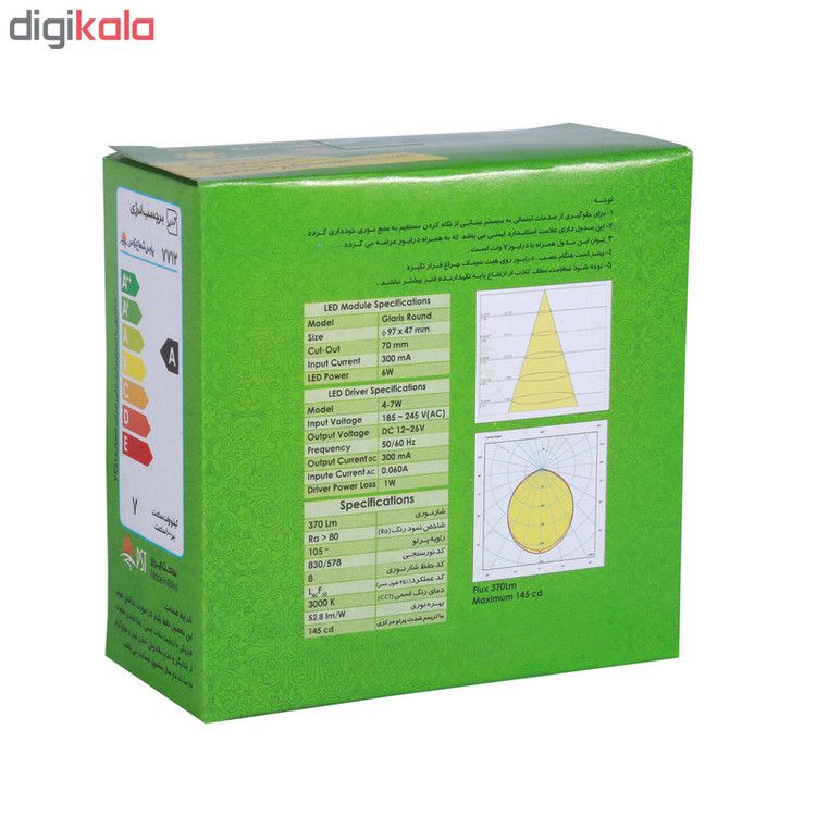 پنل ال ای دی 7 وات پارس شعاع توس مدل گلاریس بسته 10 عددی