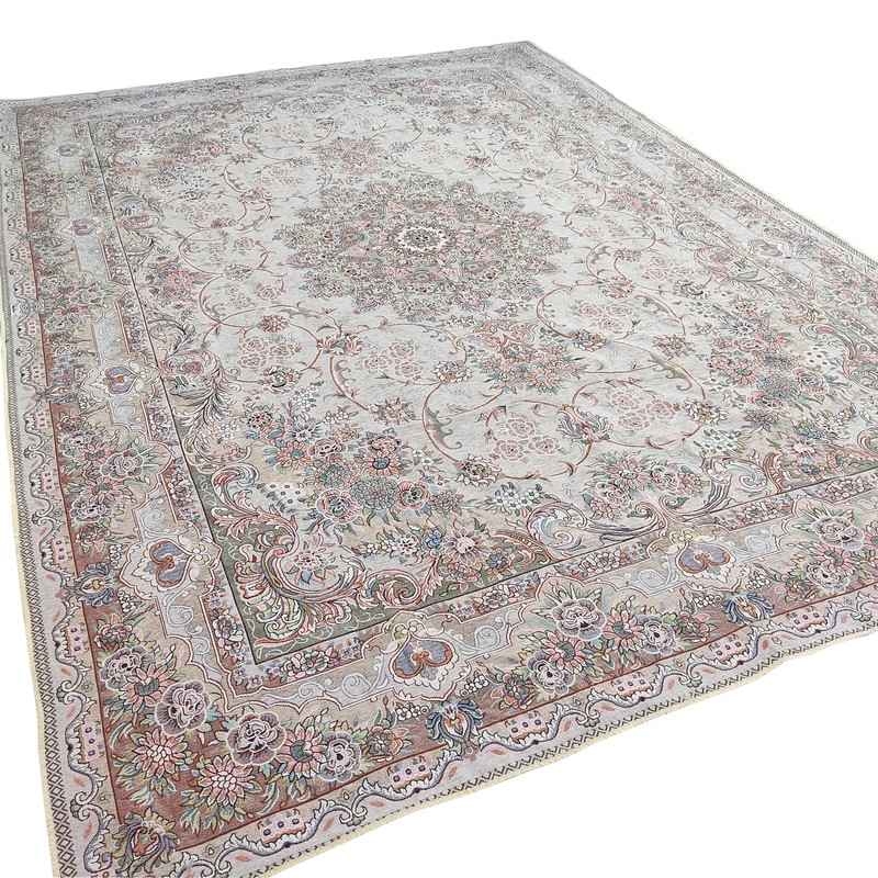 شرکت گلباف یزد یکی از شرکت هایی است که توانسته است با تولید روفرشی های خوش طرح و نقش و با ترکیب رنگی زیبا، توامندی خود را در تولید روفرشی به رخ بکشد. روفرشی مدل گل رز کد 100t با زمینه طوسی (طبق عکس ها) یک روفرشی خاص از لحاظ ترکیب رنگی به کار برده شده در آن است. این ترکیب رنگی و همچنین کیفیت و تمیزی بافت باعث شده این روفرشی به یک انتخاب خوب برای خریداران تبدیل شود. توجه شود که عکس های این روفرشی در نور طبیعی زیاد گرفته شده است. رنگ زمینه این روفرشی بسیار شبیه طوسی است.