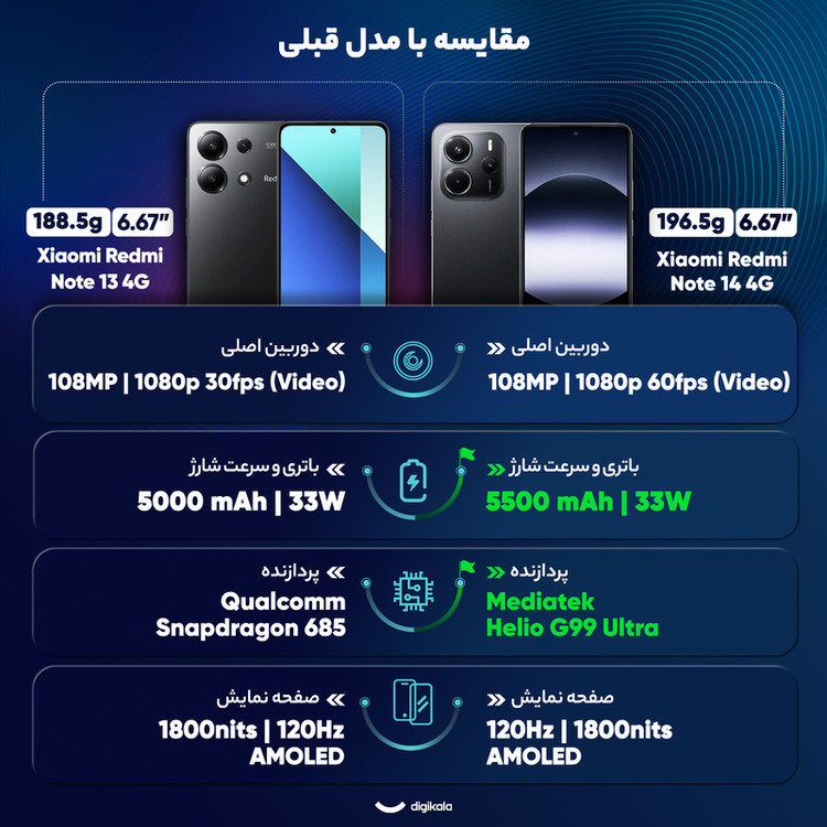 گوشی شیائومی Redmi Note 14 4G دو سیم کارت 256 گیگابایت و رم 8 گیگابایت - به همراه یک عدد قاب، محافظ صفحه نمایش و محافظ لنز دوربین