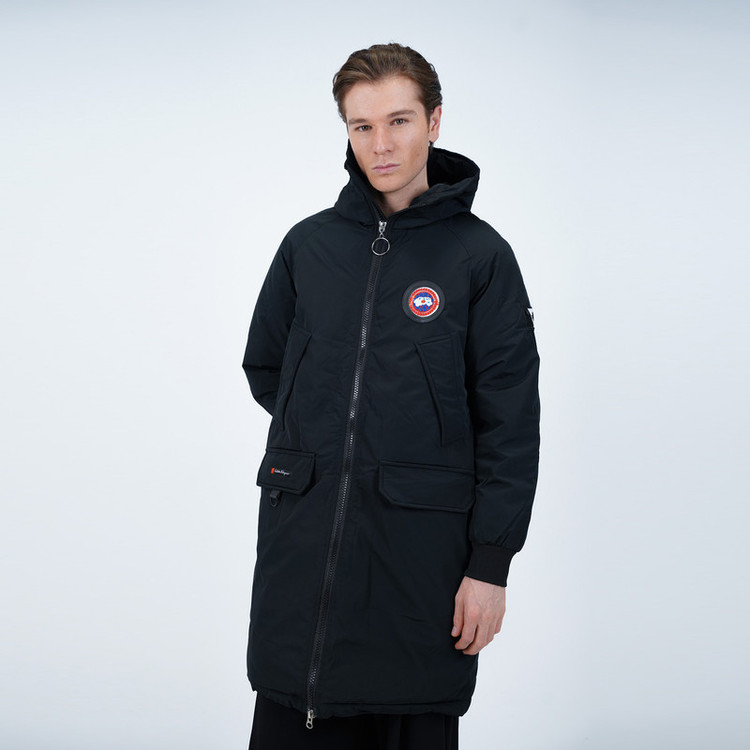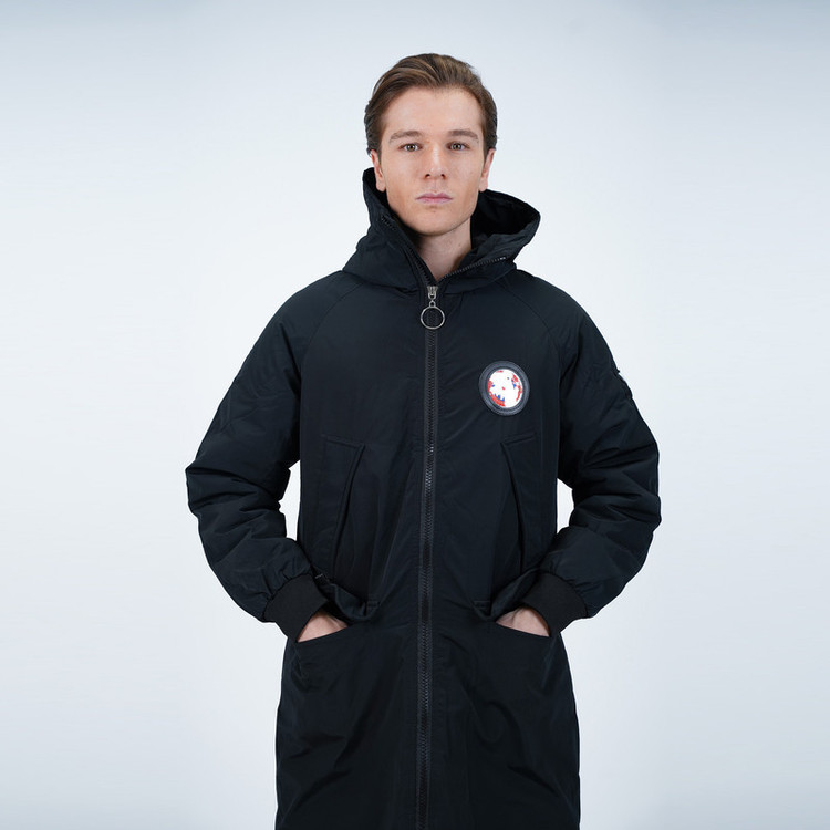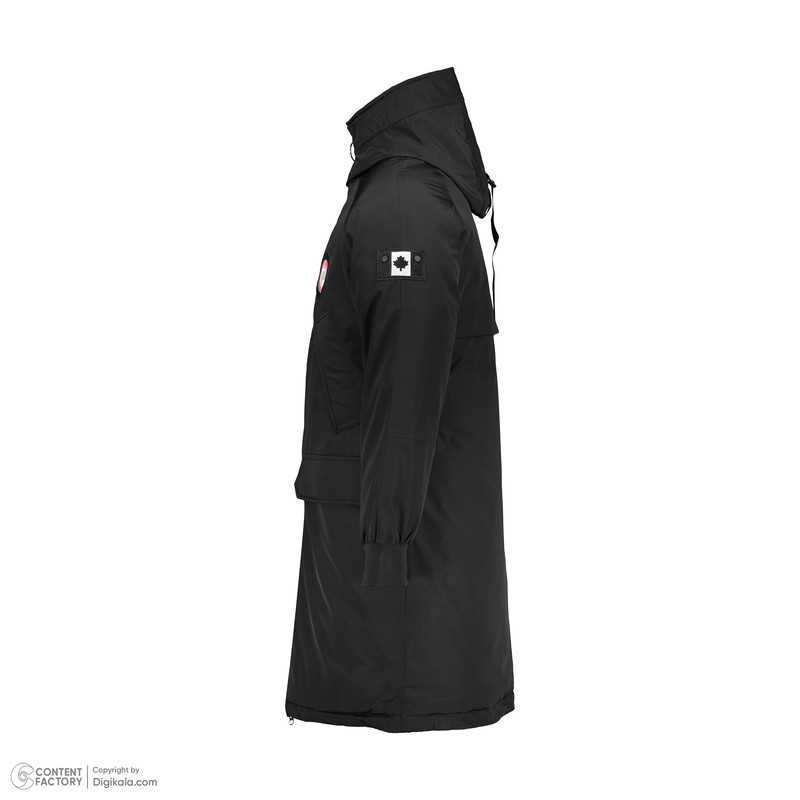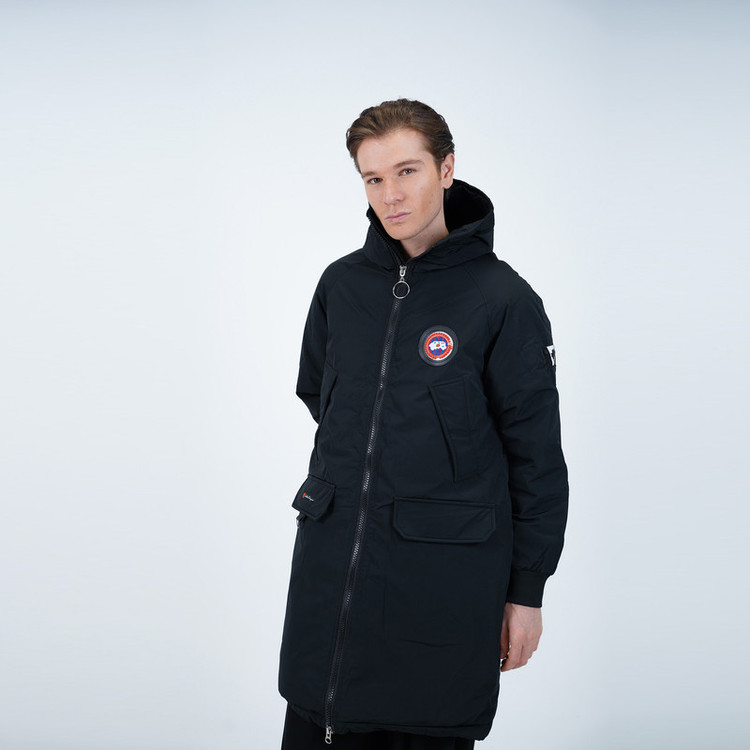 کلاهدار (کلاه ثابت) / تمام زیپ / دو جیب جانبی / قد تا بالای زانو / رنگ مشکی .