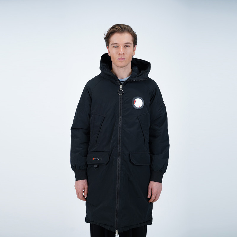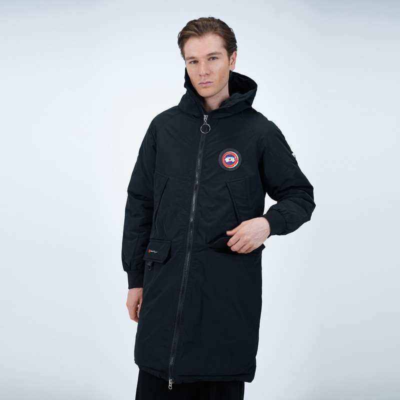 کلاهدار (کلاه ثابت) / تمام زیپ / دو جیب جانبی / قد تا بالای زانو / رنگ مشکی .