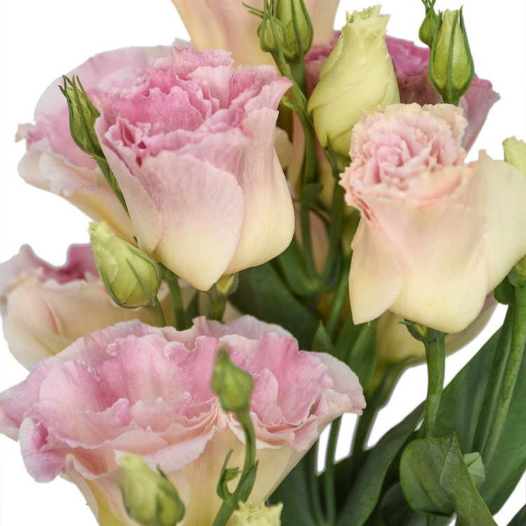 لیسیانتوس به صورت بوته ای میباشد که تعداد در دسته آن به صورت دقیق مشخص نمیباشد و بین 15 تا 25 گل رز در دسته میباشد. دسته گل بدون تزیین میباشد.