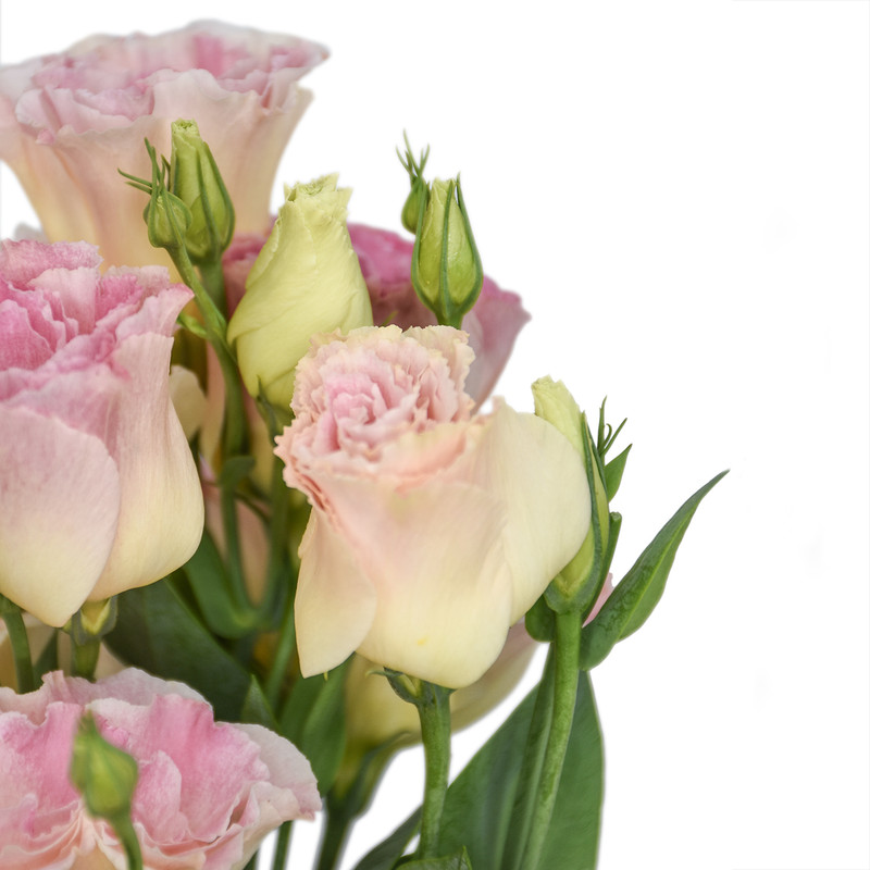 لیسیانتوس به صورت بوته ای میباشد که تعداد در دسته آن به صورت دقیق مشخص نمیباشد و بین 15 تا 25 گل رز در دسته میباشد. دسته گل بدون تزیین میباشد.
