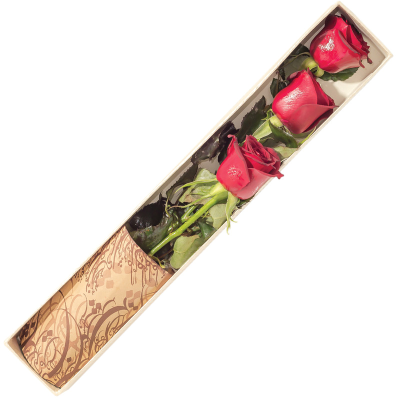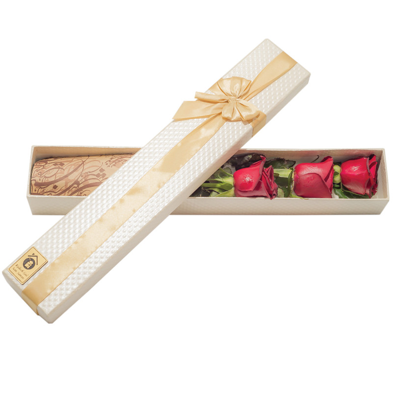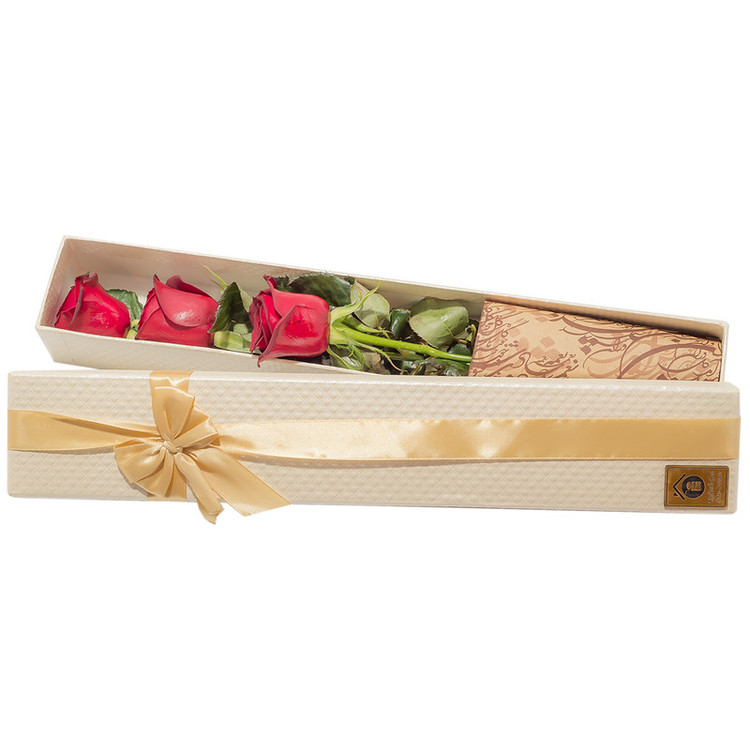 - 3 شاخه گل رز هلندی ممتاز - هارد باکس 45 سانتی