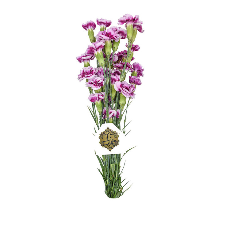گل میخک به صورت بوته ای میباشد که تعداد در دسته آن به صورت دقیق مشخص نمیباشد و بین 15 تا 25 گل رز در دسته میباشد. دسته گل بدون تزیین میباشد.