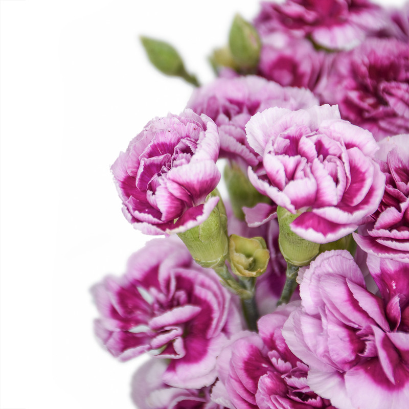 گل میخک به صورت بوته ای میباشد که تعداد در دسته آن به صورت دقیق مشخص نمیباشد و بین 15 تا 25 گل رز در دسته میباشد. دسته گل بدون تزیین میباشد.