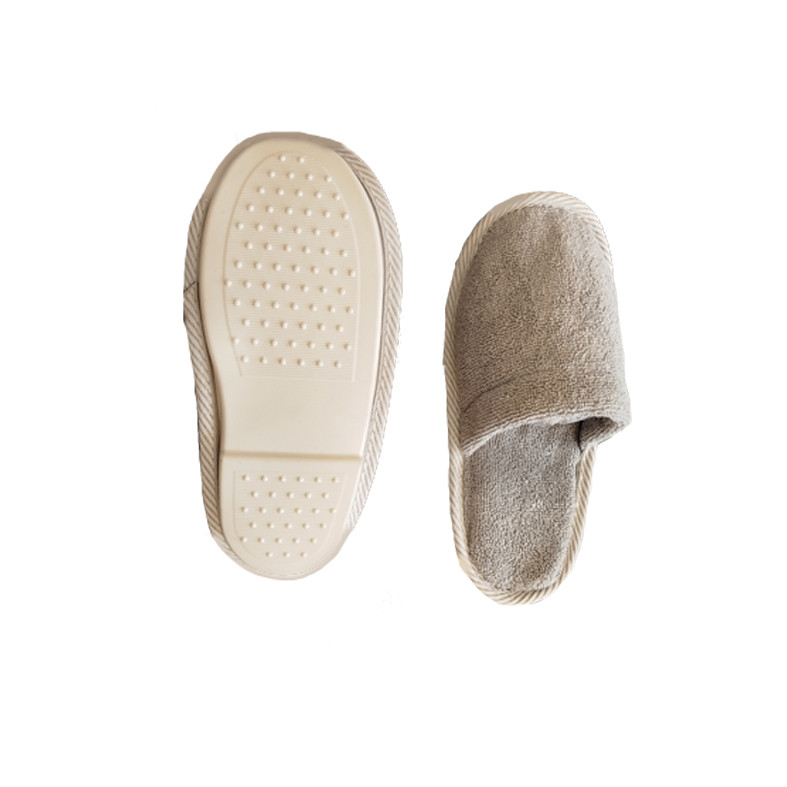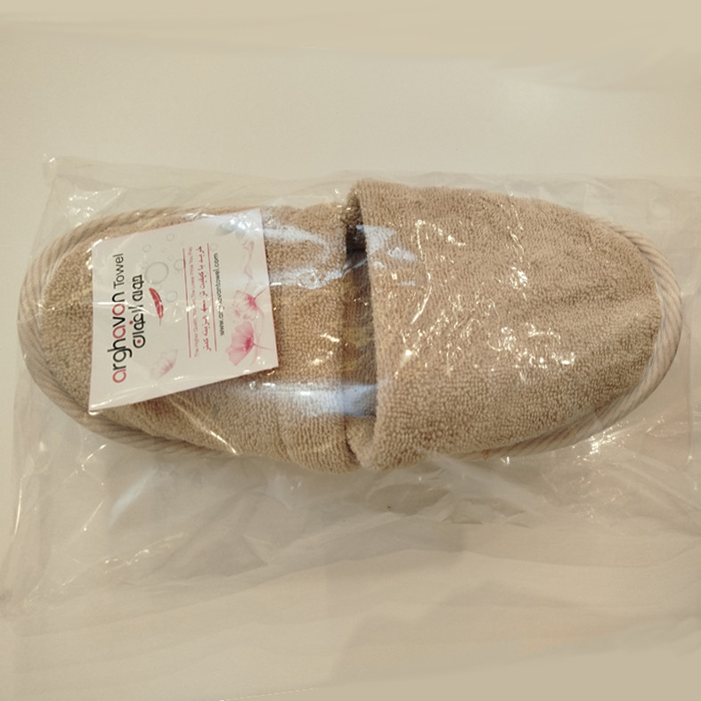 رویه حوله دمپایی ارغوان از جنس حوله ( نخ صد در صد پنبه ) بوده و زیره آن پلاستیکی و دارای ترمز برای جلوگیری از لیز خوردن است . دمپایی حوله ای فوق مناسب برای استفاده در منزل و اللخصوص حمام برای خشک کردن پاها می باشد.