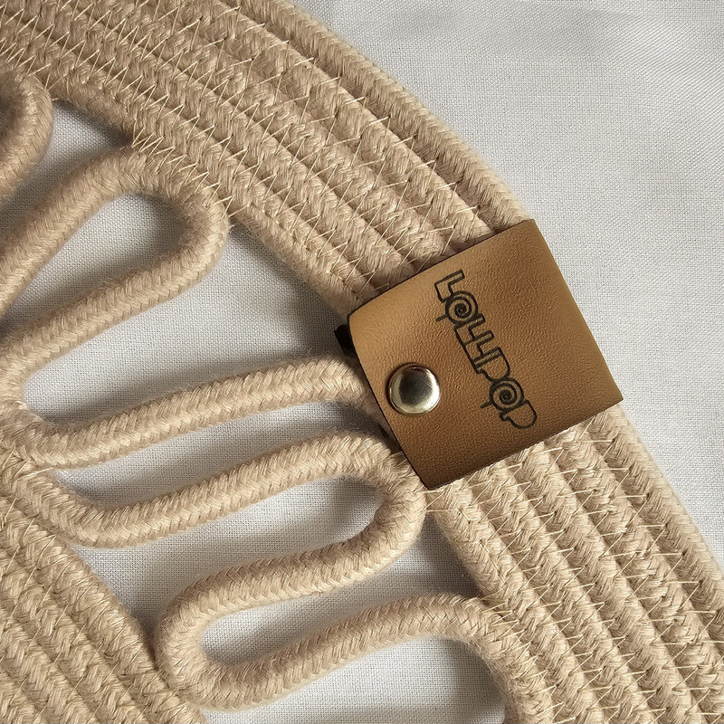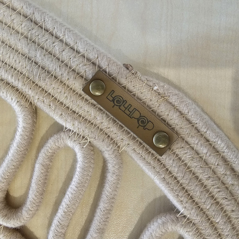 پادری لالیپاپ مدل L8 از ریسمان قیطان ساخته شده است که با چرخ خیاطی صنعتی توسط بانوان هنرمند ایرانی دوخته شده است.